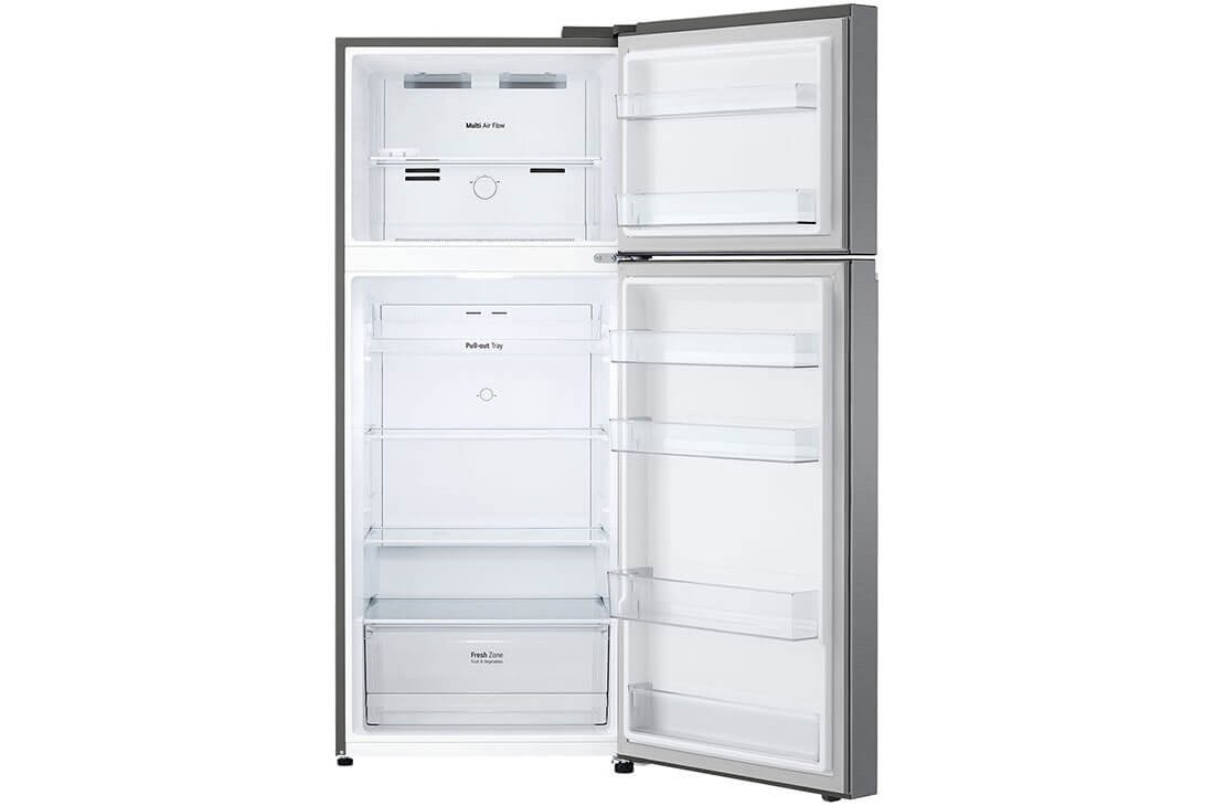ثلاجة بسعة 13.3 قدم من ال جي، مصممة لتلبية احتياجات التخزين اليومية للمطابخ الصغيرة والمتوسطة. تحتوي على رفوف قابلة للتعديل وأدراج لتسهيل تنظيم الطعام.