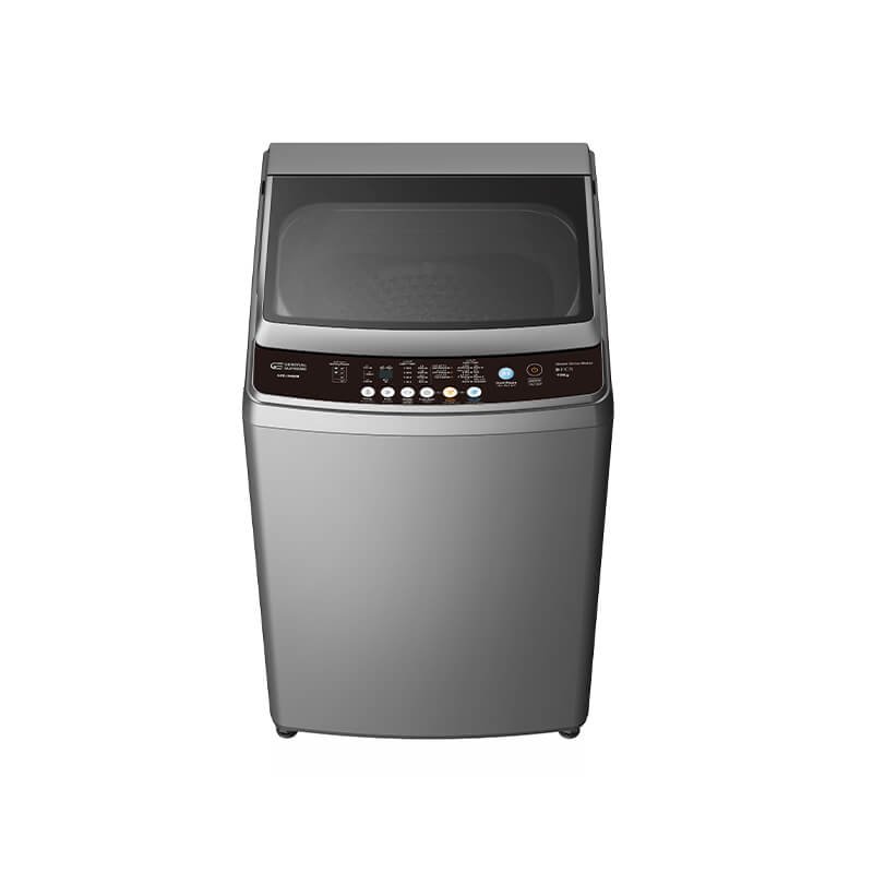 غسالة أوتوماتيك تعبئة علوية بسعة 19 كيلو، 8 برامج غسيل، محرك الدفع المباشر، اللون فضي غامق.