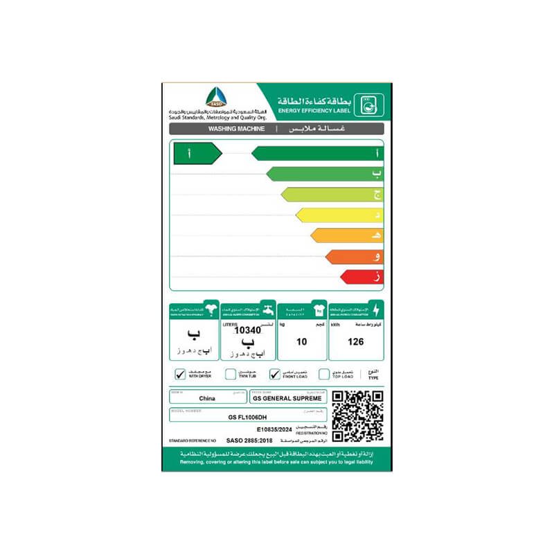 استمتع بحل عملي مع غسالة ونشاف جنرال سوبريم 10 كيلو غسيل 6 كيلو تجفيف، جهاز واحد يجمع بين الغسيل والتنشيف بكفاءة مع برامج متعددة وتصميم أنيق يناسب الاستخدام اليومي.