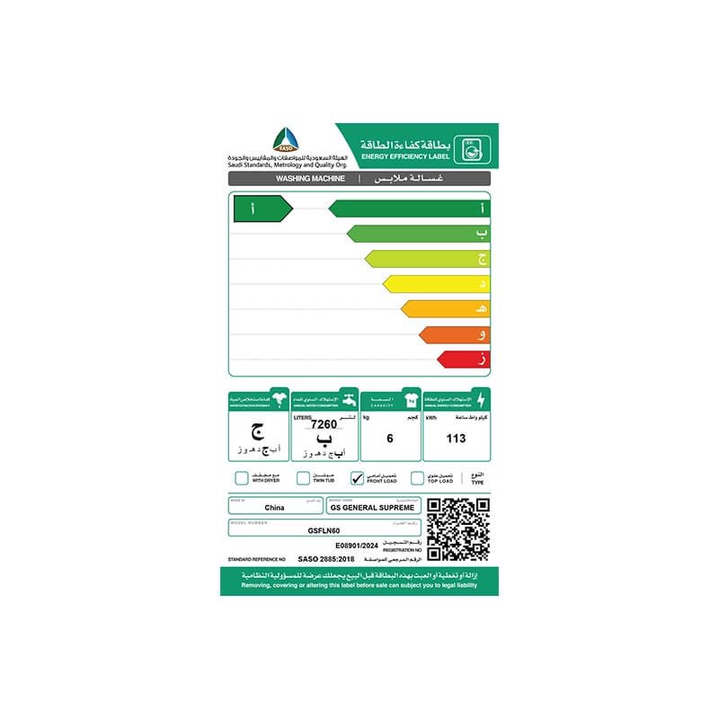 مميزات غسالة جنرال سوبريم 6 كيلو تعبئة أمامية فضي