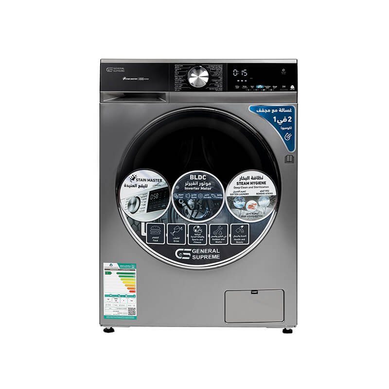 جنرال سوبريم غسالة تعبئة أمامية 8 كجم غسيل / 6 كجم تنشيف إنفيرتر ،فضي غامق, GSFLA0806DM