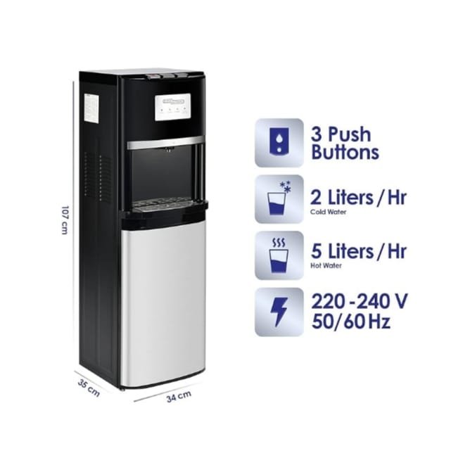 سوبر جنرال برادة مياه قارورة سفلية – 3 بزبوز – سعة بارد 2 لتر / ساخن 5 لتر – أسود وفضي – KSGL2020BM