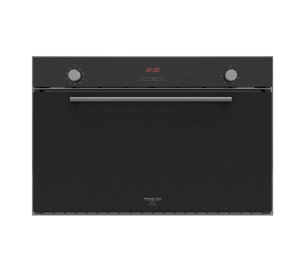 فرن كهرباء من كتشن لاين بعرض 90 سم يقدم 9 وظائف طهي متنوعة لتلبية كافة احتياجات الاستخدام اليومي والاحترافي بكفاءة عالية. يتميز الفرن بتصميم عصري فاخر مصنوع من الزجاج الأسود (كريستال أسود) بدون فريم، مع نظام تحكم بالزراير يضمن لك سهولة تامة في الاستخدام.