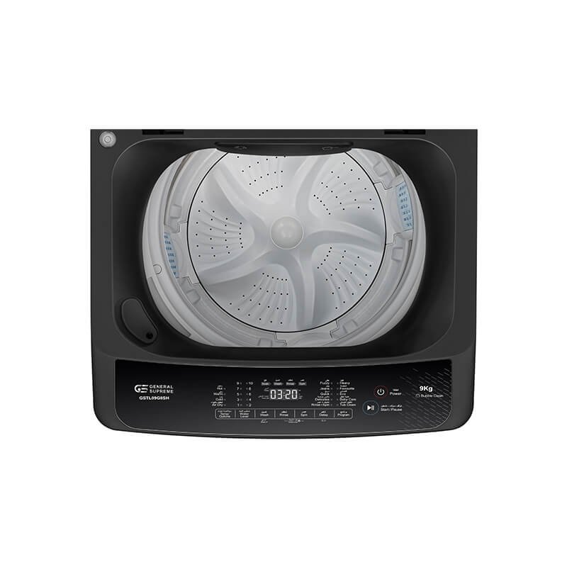 جنرال سوبريم غسالة اوتوماتيك تعبئه علوية 9 كيلو، 10 برنامج , فضي غامق,GSTL09G8SH